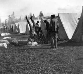 | Keywords: Military cadets perforning gymnastic feats outside their tent encampment at Fort Lawton, May 1900 (KIEHL 317).jpeg check categories 4 March 2016 2 Photograph Creator H Ambrose Kiehl Text from Kiehl log Hand-spring May 1900 Album 2 280 Subjects LCSH Military cadets--Washington State --Fort Lawton Seattle ; Gymnastics--Washington State --Fort Lawton Seattle ; Tents--Washington State --Fort Lawton Seattle ; Fort Lawton Seattle Wash ; Military bases--Washington State --Seattle Concepts War and the military; Recreational activities depicted place United States--Washington State --Fort Lawton Seattle 1900 Institution University of Washington UWASH-KIEHL-source accession number kiehl 317 PD-old-auto-1923 1942 Information field Order Number KHL190 Images from the H Ambrose Kiehl Photograph Collection to check Fort Lawton Military bases |