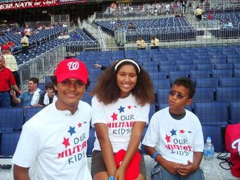 | Keywords: Military Kids Hit Home Run at Nationals Tribute DVIDS189494.jpg en Left to right Riley Anderson his sister Olivia and his brother Adrian participate in Tribute to Our Troops July 21 Major League Baseball's Washington Nationals Careerbuilder com's Mission Get Hired program and troop-support group Our Military Kids joined together for the event at Nationals Park in Washington D C As part of this event 1 500 tickets were given to military families to enjoy an evening of baseball Riley Anderson threw out the ceremonial first pitch before the Nationals' game with the New York Mets 2009-07-21 https //www dvidshub net/image/189494 189494 2009-07-22 16 50 WASHINGTON DC US PD-USGov Washington Nationals Images from DoD uploaded by Fæ |