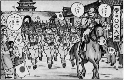 | Keywords: Military manga 1938.jpg en Japanese humorous postcard depicting the entrance of the Japanese Army in a Chinese town 1938 Certain victory images of World War II in the Japanese media By David C Earhart Empire of Japan Custom license marker 2013 06 26 PD-Japan-oldphoto Uploaded with UploadWizard World War II posters from Japan World War II propaganda pamphlets from Japan Propaganda of Japan | ||||