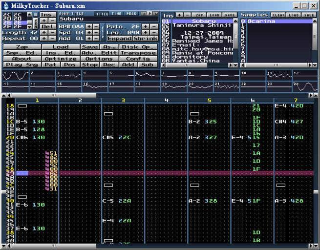 Keywords: Milkytracker Subaru.jpg en A screen copy of Milkytracker own James Hsu 2010-03-04 Milkey Tracker Trackers music software MilkyTracker Numeric sequencers on Trackers