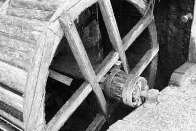 Keywords: mill mill wheel old worn black and white water mill