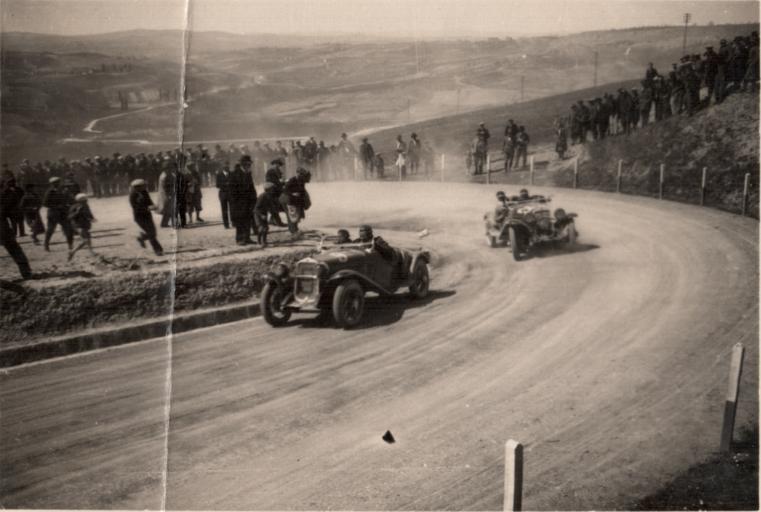 | Keywords: MilleMiglia1932.png en This shot is from the Sixth edition of Mille Miglia in 1932 The location is Montalcino-Radicofani near Siena http //it wikipedia org/wiki/Radicofani First car is number 9 Mille Miglia del 1932 probabilmente scattata tra Montalcino e Radicofani La Fiat 514 MM condotta da Frate Ignoto alias Arturo Mercanti ideatore del Circuito di Monza inseguita dalla Fiat 514 CA Spider del fratelli Bettinazzi own Bruno Guerrini 1932 Mille Miglia Fiat 514 Montalcino Radicofani | ||||