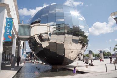 Keywords: millenium space bristol ball england planetarium glass aluminium mirror shiny metal architecture reflection homes urban modern sunny blue summer water basin fountain art