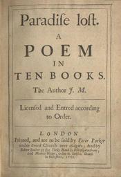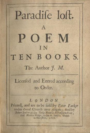 | Keywords: Milton paradise.jpg John Miltons Paradise Lost von 1668 John Milton s Paradise lost from 1668 Обложка пе вого издания «Поте янного ая» Джона ильтона 1668 год Обкладинка пе шого видання «Вт аченого аю» Джона ільтона 1668 ік Тытульны а куш пе шага выданьня «Ст ачанага аю» Джона ілтана» 1668 ок Transcription Paradiſe loſt A POEM IN TEN BOOKS The Author J M Licenſed and Entred according to Order LONDON Printed and are to be ſold by Peter Parker under Creed Church neer Aldgate ; And by Robert Boulter at the Turks Head in Biſhopſgate-ſtreet ; And Matthias Walker under St Dunſtons Church in Fleet-ſtreet 1668 1668 English Wikipedia en Image Milton paradise jpg http //www leeds ac uk/library/adopt-a-book/milton-paradise htm Leeds University Library PD-old-100 Previous upload history at the English Wikipedia 09 31 February 4 2005 Darwinek Talk contribs block 426×557 55 307 bytes Paradise Lost 1668 books Title pages from England Poetry books Scanned English texts |