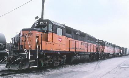 | Keywords: MILW 2067 , a GP40 built Dec. 1986 in Bensenville, Illinois Yards in March 1985 (29660303062).jpg en 1 of 14 Milwaukee Road roster type photos uploaded today <br> <b>A Roger Puta Photograph</b> 2016-09-18 13 20 09 https //www flickr com/people/129679309 N05 railfan 44 https //www flickr com/photos/129679309 N05/29660303062/ User Fæ/Flickr API Puta's Midwestern Railroad Photographs Chicago Rails EMD Northwest Indiana and Chicagoland railfans Railfanning the Chicagoland Suburbs Classic EMD Power EMD Gallery Railroading in Illinois Chicago Area Railfans Milwaukee Road Mel Finzer RogerPuta Photographs by Roger Puta Photos uploaded from Flickr by Fæ using a script Chicago Milwaukee St Paul and Pacific Railroad 1985 in rail transport in the United States |