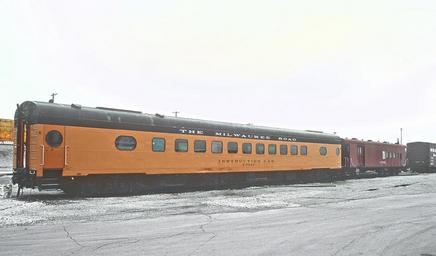 | Keywords: milwaukee road milwaukeeroad vehicle train outdoor railroad locomotive MILW X5002 started life as the Cannon Falls, a coach-touralux built by the Milwaukee Shops in 1947. It was concverted to coach 554 in 1952. After several renumberings, it became the X5002 in 1971. The second car started out as one of the 8 branchline combines built by the Milwaukee shops in 1934. A number of these ended up in MOW service. Thanks to kevink for the above information. A Roger Puta Photograph MILW X5002 started life as the Cannon Falls, a coach-touralux built by the Milwaukee Shops in 1947. It was concverted to coach 554 in 1952. After several renumberings, it became the X5002 in 1971. The second car started out as one of the 8 branchline combines built by the Milwaukee shops in 1934. A number of these ended up in MOW service. Thanks to kevink for the above information. A Roger Puta Photograph MILW X5002 started life as the <i>Cannon Falls</i>, a coach-touralux built by the Milwaukee Shops in 1947. It was concverted to coach 554 in 1952. After several renumberings, it became the X5002 in 1971.