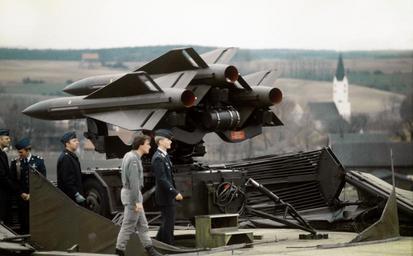 | Keywords: MIM-23 Hawk Luftwaffe 1981.JPEG U S Air Force Academy cadets visit a German Luftwaffe MIM-23 Hawk Dummy missile site on 20 April 1981 U S Defenseimagery mil photo VIRIN DF-ST-82-04469 1981-04-20 http //www defenseimagery mil/imagery html;jsessionid EE4C8241CFAE1022EB5EB24405FFB420 guid 0524432f6520932e7111c95c1aad1a6fb5641732 Photographer's Name SSGT James R Pearson PD-USGov Hawk missiles in German service | ||||