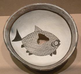 | Keywords: Mimbres Bowl with fish DMA 1998-103-FA.jpg Bowl with fish; ceramic Mimbres pottery black-on-white type Mimbres people Mogollon culture New Mexico USA c 1000 “1150 CE Dallas Museum of Art Dallas Texas Foundation of the Arts Collection anonymous gift; object number 1990 103 FA own 2009-10 Photo User FA2010 Collections of the Dallas Museum of Art Mimbres pottery Fish in pottery Fish in Pre-Columbian art Art of New Mexico ~ Animals of New Mexico ~ Fish of the American Southwest ~ | ||||