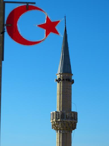 Keywords: minaret mosque house of prayer prayer storm crescent sickle star flag symbol turkish red blue sky turkey