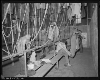 | Keywords: labor u.s. national archives usnationalarchives nara:arcid=540555 coal mines coalmines mineral resources mineralresources coal mines miners reliance wyoming coal miners coalminers union pacific coal company unionpacificcoalcompany reliance mine reliancemine reliance, sweetwater county, wyoming reliancesweetwatercountywyoming wash and change house washandchangehouse coal miner coalminer hard hat hardhat blackandwhite monochrome black and white Original Caption: "Miners Changing Clothes in Wash and Change House. Union Pacific Coal Company, Reliance Mine, Reliance, Sweetwater County, Wyoming." U.S. National Archives’ Local Identifier: NWDNS-245-MS-685L From: Series: Photographs of the Medical Survey of the Bituminous Coal Industry (Record Group 245) Created by: Department of the Interior. Solid Fuels Administration For War (04/19/1943 - 06/30/1947 ) Production Date: 7/9/1946 Photographer: Lee, Russell, 1903-1986 Subjects: Coal mines and mining Mines and mineral resources Persistent URL: catalog.archives.gov/id/540555 Repository: Still Picture Records Section, Special Media Archives Services Division (NWCS-S), National Archives at College Park, 8601 Adelphi Road, College Park, MD, 20740-6001. For information about ordering reproductions of photographs held by the Still Picture Unit, visit: www.archives.gov/research/order/still-pictures.html Reproductions may be ordered via an independent vendor. NARA maintains a list of vendors at www.archives.gov/research/order/vendors-photos-maps-dc.html Access Restrictions: Unrestricted Use Restrictions: Unrestricted Original Caption: "Miners Changing Clothes in Wash and Change House. Union Pacific Coal Company, Reliance Mine, Reliance, Sweetwater County, Wyoming." U.S. National Archives’ Local Identifier: NWDNS-245-MS-685L From: Series: Photographs of the Medical Survey of the Bituminous Coal Industry (Record Group 245) Created by: Department of the Interior. Solid Fuels Administration For War (04/19/1943 - 06/30/1947 ) Production Date: 7/9/1946 Photographer: Lee, Russell, 1903-1986 Subjects: Coal mines and mining Mines and mineral resources Persistent URL: catalog.archives.gov/id/540555 Repository: Still Picture Records Section, Special Media Archives Services Division (NWCS-S), National Archives at College Park, 8601 Adelphi Road, College Park, MD, 20740-6001. For information about ordering reproductions of photographs held by the Still Picture Unit, visit: www.archives.gov/research/order/still-pictures.html Reproductions may be ordered via an independent vendor. NARA maintains a list of vendors at www.archives.gov/research/order/vendors-photos-maps-dc.html Access Restrictions: Unrestricted Use Restrictions: Unrestricted |