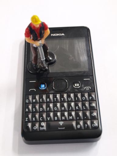Keywords: miniature toy repair repairman phone communication breakdown cell phone