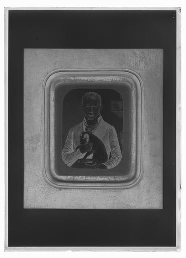| Keywords: Miniatyrporträtt av Samuel Naef, ägare till värdshuset Zum weissen Rössli, S:t Gallen - Livrustkammaren - 69052-negative.tif Samuel Naef värdshusvärd plain text Akvarell på papper Stående midjebild fas framåtkammat grånande hår randig väst med hög krage vit halsduk blågrå rock Står vid litet bord och leker med vit hund med bruna öron som sitter på bordet I bakgrunden burar med småfågel <br/><br/>Passepartout målad med guldfärg dageröppning med rundade hörn glas <br/><br/>Prydnadsram av trä målad på framsidan och kanterna med mörkt rödbrun lasyrfärg På baksidan klistrat svart pressat papper upptill mässingsring original caption Gustav IV Adolfs död och begravning ca 1820 paper - glass - wood size mm 89 size mm 68 size mm 176 ram size mm 152 ram g 218 LRK Gustav IV Adolf i S t Gallen 1993 place of origin original filename LN_B02788_005668 38952 inventory number LRK 2394 69052 CC0 Miniatyrporträtt av Samuel Naef ägare till värdshuset Zum weissen Rössli S t Gallen - Livrustkammaren - 69052 tif |