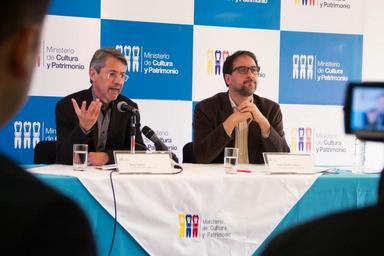 Keywords: indoor Quito, 18 de octubre de 2016. Hoy, Raúl Vallejo, Ministro de Cultura y Patrimonio del Ecuador (MyCP), en rueda de prensa, anunció los resultados de las postulaciones a los Fondos Concursables 2016-2017 en las categorías de los proyectos artísticos, culturales y festivales. En total fueron 170 las propuestas seleccionadas. Cada una recibirá entre seis mil y 25 mil dólares, no reembolsables, para su ejecución y sus beneficiarios serán notificados durante los tres días siguientes. En la categoría: Proyectos artísticos y culturales de libre creación, fueron escogidas 116 propuestas, con una inversión de un millón de dólares; y en el caso de festivales artísticos, fueron 54, con un monto de 720 mil dólares. 200 mil dólares más serán destinados a festivales emblemáticos que se conocerán en próximas fechas. El titular de la Cartera de Cultura y Patrimonio destacó que los Fondos Concursables constituyen un hito para el apoyo a la creatividad y circulación de las artes en el Ecuador: “Desde el año 2008 hasta hoy, el Estado, a través del MCYP, ha destinado 13’645.411,08 de dólares de financiamiento público para esta clase de proyectos”. Además señaló que el montó utilizado para este año, “servirá de base en el presupuesto estatal de lo que será el Instituto Nacional de Fomento a las Artes y la Creatividad, este último creado en el proyecto de Ley de Cultura, próxima a tratarse en la Asamblea” , acotó Vallejo. La convocatoria anual a los Fondos Concursables se ha consolidado como un ejercicio democrático amplio y de incentivo para los creadores y los artistas en todo el país. A partir de 2015 se implementó la asignación de recursos por zonas determinadas por la SENPLADES, con la finalidad de garantizar el acceso y evitar la concentración de recursos. A escala nacional fueron aceptadas 1568 postulaciones correspondientes a las dos categorías. Para solventar cualquier inquietud remitirse a los siguientes correos: fondoslibrecreacion@culturaypatrimonio.com festivales@culturaypatrimonio.com Quito, 18 de octubre de 2016. Hoy, Raúl Vallejo, Ministro de Cultura y Patrimonio del Ecuador (MyCP), en rueda de prensa, anunció los resultados de las postulaciones a los Fondos Concursables 2016-2017 en las categorías de los proyectos artísticos, culturales y festivales. En total fueron 170 las propuestas seleccionadas. Cada una recibirá entre seis mil y 25 mil dólares, no reembolsables, para su ejecución y sus beneficiarios serán notificados durante los tres días siguientes. En la categoría: Proyectos artísticos y culturales de libre creación, fueron escogidas 116 propuestas, con una inversión de un millón de dólares; y en el caso de festivales artísticos, fueron 54, con un monto de 720 mil dólares. 200 mil dólares más serán destinados a festivales emblemáticos que se conocerán en próximas fechas. El titular de la Cartera de Cultura y Patrimonio destacó que los Fondos Concursables constituyen un hito para el apoyo a la creatividad y circulación de las artes en el Ecuador: “Desde el año 2008 hasta hoy, el Estado, a través del MCYP, ha destinado 13’645.411,08 de dólares de financiamiento público para esta clase de proyectos”. Además señaló que el montó utilizado para este año, “servirá de base en el presupuesto estatal de lo que será el Instituto Nacional de Fomento a las Artes y la Creatividad, este último creado en el proyecto de Ley de Cultura, próxima a tratarse en la Asamblea” , acotó Vallejo. La convocatoria anual a los Fondos Concursables se ha consolidado como un ejercicio democrático amplio y de incentivo para los creadores y los artistas en todo el país. A partir de 2015 se implementó la asignación de recursos por zonas determinadas por la SENPLADES, con la finalidad de garantizar el acceso y evitar la concentración de recursos. A escala nacional fueron aceptadas 1568 postulaciones correspondientes a las dos categorías. Para solventar cualquier inquietud remitirse a los siguientes correos: fondoslibrecreacion@culturaypatrimonio.com festivales@culturaypatrimonio.com
