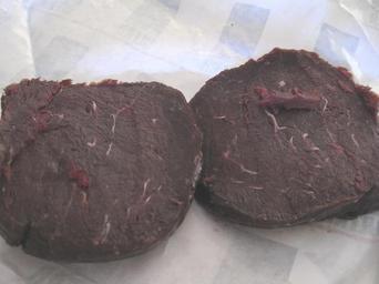 Keywords: Minke-whale-meat.jpg en Uncooked minke whale meat steak Bought in Norway 2010-05-06 own The great big fish in the sky cc-zero Uploaded with UploadWizard Whale meat