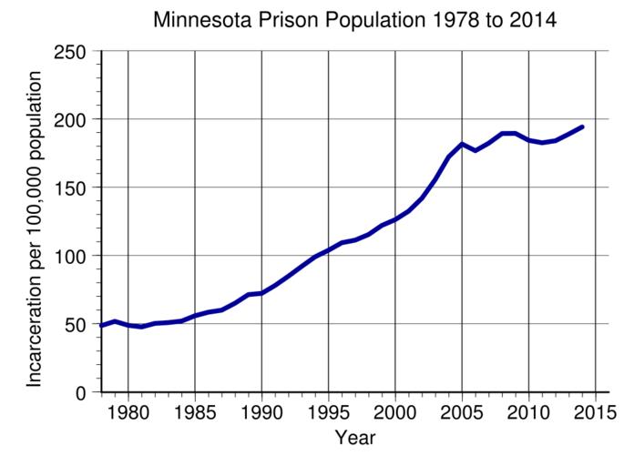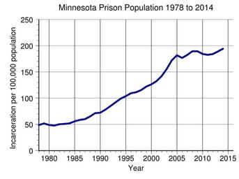 | Keywords: Minnesota Prison Population.svg en Minnesota prison incarceration rate per 100 000 population from 1978 to 2014 Data from http //www bjs gov/index cfm ty nps BJS 2016-05-10 own Delphi234 other versions current annually Generated with Wikimedia SVG Chart SVG Chart/box cc-zero Prisons in Minnesota Imprisonment and detention rates in the United States |