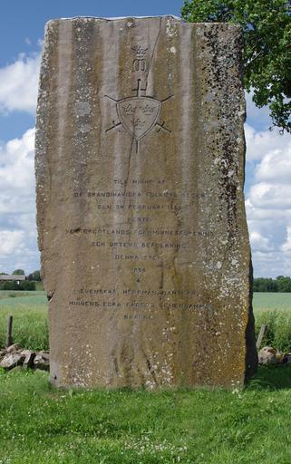 | Keywords: Minnessten (rest 1896) över Slaget vid Åsle (1389).jpg en Memorial over The Battle of Åsle in 1389 The memorial was erected in 1896 by Västergötlands fornminnesförening in Åsle village and parish in Vartofta hundred in Västergötland and Falköping municipality in Västra Götalands län Sweden sv Minnessten över sv slaget vid Åsle år 1389 Stenen restes av Västergötlands fornminnesförening år 1896 vis sv Åsle kyrka i kyrkbyn sv Åsle i Vartofta härad Västergötland och i Falköpings kommun i Västra Götalands län 10210400150001 RAÄ-nr Åsle 15 1 own Nasko 2011-07-10 58 1802 13 6855 heading N Åsle socken Västergötland Memorial stones in Falköping Municipality July 2011 in Sweden |