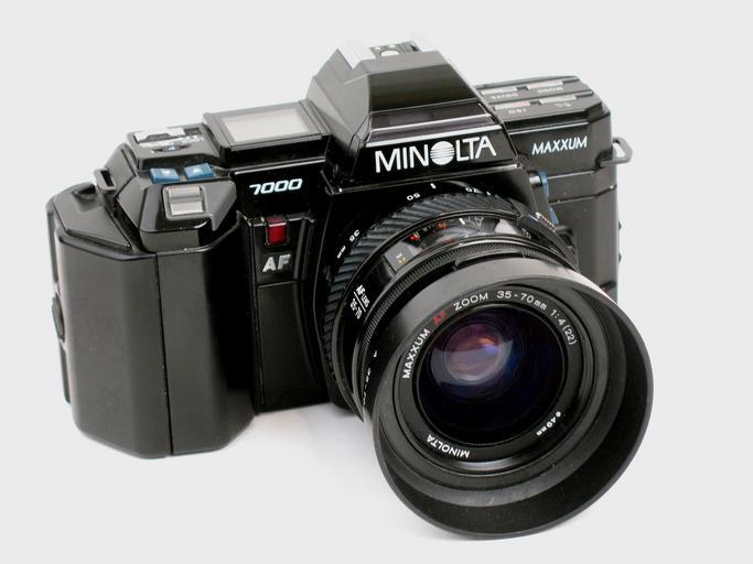 Keywords: Minolta Maxxum 7000 with 35-70mm zoom lens.jpg en The Minolta Maxxum 7000 was an autofocusing 35mm SLR camera introduced in early 1985 It also had a power winder that advanced film automatically after each shot The camera with a 55mm lens sold for 500 Shown with the optional 35-70mm zoom lens Review in https //books google com/books id pAAAAAAAMBAJ pg PA128 Popular Science April 1985 page 128 Photo taken with a Canon PowerShot A630 camera Own 2008-05-31 Michael Holley Swtpc6800 <gallery> File Minolta Maxxum 7000 with 70-210 mm zoom lens jpg File Minolta Maxxum 7000 without lens jpg File Minolta Maxxum 7000 35mm SLR back open jpg File Minolta Maxxum 7000 35mm SLR back jpg </gallery> Minolta 7000 Photographs by User Swtpc6800 |