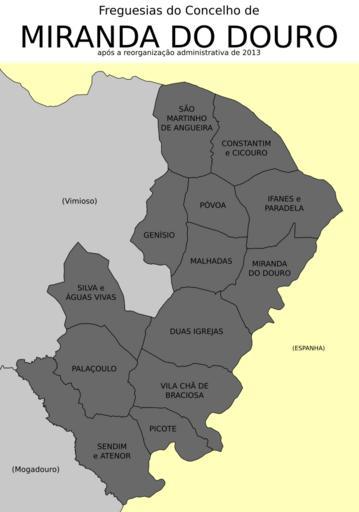 | Keywords: Miranda do Douro freguesias 2013.svg pt Freguesias do concelho de Miranda do Douro Fontes Diário da República Reorganização administrativa do território das freguesias Lei n º 11-A/2013 de 28 de janeiro Direcção-Geral do Território Carta Administrativa Oficial de Portugal CAOP versão 2013 Continente http //www dgterritorio pt/ficheiros/cadastro/caop/caop_download/caop_2013_0/caop2013cont_zip_2 en Civil parishes in the municipality of Miranda do Douro Portugal Sources Diário da República Administrative reorganization of the civil parishes' territory Law n 11-A/2013 from 28th January Direcção-Geral do Território Official Administrative Chart of Portugal CAOP version 2013 Mainland http //www dgterritorio pt/ficheiros/cadastro/caop/caop_download/caop_2013_0/caop2013cont_zip_2 2014-03-17 01 16 08 own Gazilion cc-zero Uploaded with UploadWizard Freguesias of Miranda do Douro SVG maps of freguesias in Portugal |