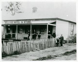 | Keywords: Mirboo Bellevue Hotel 1885.jpg Bellvue Hotel and Store incorporating Mirboo Post Office was built by George Goldsmith in 1885 near a crossing over the Tarwin River at Mirboo South The footpath is of corduroy construction Subject Mirboo Subject Hotels Subject General stores Subject Post offices Subject Road construction and maintenance Subject Mirboo Post Office Date 1885-1899 Identifier AB0100 Identifier Please use this identifier to cite or link to this item http //arrow monash edu au/hdl/1959 1/3646 Identifier monash 3646 Resource type still image Rights Copyright expired under Copyright Act 1968 Commonwealth of Australia as at 23/06/05 Format 1 photoprint b w ;19 x 24 cm </nowiki></pre> PD-Australia Hotels and pubs in Victoria Australia General stores in Victoria Australia Mirboo Victoria |