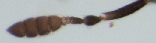 | Keywords: Mirobaeus 2.jpg en adult female Mirobaeus sp antenna self-photographed S E Thorpe 2010-01-02 NEW ZEALAND WO Limestone Downs pitfall trap 7-21 Dec 2009 C H Watts Contact Energy Waikato wind farm C block transmission poles pitfall trap B Mirobaeus Hymenoptera antennae |