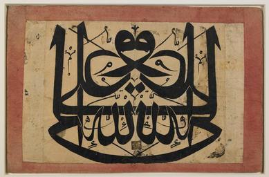 | Keywords: Mirror Image of 'Ali wali Allah WDL6788.png Artwork ru ахмуд Иб агим fr Maḥmūd Ibrāhīm en Maḥmūd Ibrāhīm zh 穆罕默德 易 拉欣 pt Maḥmūd Ibrāhīm ar محمود إبراهيم es Maḥmūd Ibrāhīm ru Зе кальное изоб ажение ф азы 'Ali wali Allah fr Image en miroir de 'Ali wali Allah en Mirror Image of 'Ali wali Allah zh 阿里是 主之友 的 像 pt Imagem Espelhada de 'Ali wali Allah ar صورة معكوسة لسيدنا علي رضي الله عنه ru а этой ту ецкой <em>левхе</em> каллиг афическом панно 18-го века п едставлена ф аза шиитов Али наместник Бога написанная в п ямом и об атном нап авлении что создает ее точное зе кальное отоб ажение Для создания точной каллиг афической копии каллиг аф использовал ве тикально сложенную по се едине плотную бумагу к емового цвета а затем наклеил ее на ка тон и обклеил поля озовой п ямоугольной амкой Зе кальное письмо было асп ост анено в пе иод аннего нового в емени но его п оисхождение может уходить ко нями еще в доисламские зе кальные наскальные исунки в Хиджазе в западной полосе А авийского полуост ова В ско ом в емени была освоена г ави овка в об атном нап авлении для изготовления монет и печатей Зе кальное письмо и создание зе кальных изоб ажений было асп ост анено в Османской импе ии в 18-ом и 19-ом веках в частности в оккультных к угах связанных с о деном бекташи П едставители о дена бекташи создавали каллиг афические панно и ка тины от ажающие их убеждения с еди кото ых ве а в божественную п и оду Али четве того халифа ислама и зятя п о ока ухаммеда адпись на панно гово ит о том что Али неотделим от Бога Это панно могло висеть на стене в жилом помещении де вишей в мечети или в обители де виша Данный об азец соде жит собственно учную печать художника квад атный отпечаток пе ек ывающий цент альный ве тикальный сгиб а печати указано имя ахмуд Иб агим кото ый является авто ом д угих панно дати уемых 1134 г хидж ы 1721-1722 гг н э и 1141 г хидж ы 1728 г н э Исходя из этого можно п едположить что это панно аботы того же художника ве оятно относится п име но к 1720 1730 гг н э <br>А абская каллиг афия; Иллюмини ование укописей; Исламская каллиг афия; Исламские укописи; Зе кальные изоб ажения fr Ce <em>levha</em> panneau calligraphique ottoman du XVIIIe siècle montre la phrase shi'a « Ali est le représentant de Dieu » à l'endroit et à l'envers créant ainsi une parfaite image en miroir Le calligraphe a utilisé le pli central vertical de l'épais papier couleur crème pour dessiner la reproduction calligraphique exacte avant de la fixer sur un carton et de coller des cadres rectangulaires roses le long de ses bordures L'écriture en miroir s'est beaucoup développée au début de l'époque moderne mais ses origines remonteraient aux inscriptions en miroir pré-islamiques retrouvées sur la roche dans le Hedjaz la bande occidentale de la péninsule arabe Graver à l'envers pour fabriquer des pièces de monnaie et des sceaux est un art maîtrisé depuis longtemps L'écriture en miroir et la fabrication d'images en miroir étaient très développées sous l'empire ottoman au cours des XVIIIe et XIXe siècles en particulier dans les résidences mystiques associées à l'ordre bektashi Les bektashis ont créé des panneaux calligraphiques et des peintures réfléchissantes de leurs dogmes qui comprenaient la croyance en la divinité de 'Ali quatrième calife de l'islam et gendre du prophète Mahomet Comme le suggère ce panneau Dieu et 'Ali sont indissociables Le panneau était probablement accroché à un mur dans une résidence de derviches bektashis dans une mosquée ou dans une loge de derviche Cet exemplaire comporte le sceau olographe de l'artiste une impression carrée chevauchant le pli central vertical portant le nom de Mahmud Ibrahim dont l'œuvre apparaît sur un autre levha où figurent les dates 1134 A H 1721 1722 apr J -C et 1141 A H 1728 ce qui suggère que ce panneau du même auteur date probablement des années 1720 1730 <br>Calligraphie arabe; Enluminures; Calligraphie islamique; Manuscrits islamiques; Images en miroir en This 18th-century Ottoman<em> levha</em> calligraphic panel depicts the Shi'a phrase 'Ali is the vicegerent of God in obverse and reverse creating an exact mirror image The calligrapher used the central vertical fold in the thick cream-colored paper to trace the exact calligraphic duplication prior to mounting it on cardboard and pasting rectangular pink frames along its borders Mirror writing flourished during the early modern period but its origins may stretch as far back as pre-Islamic mirror-image rock inscriptions in the 