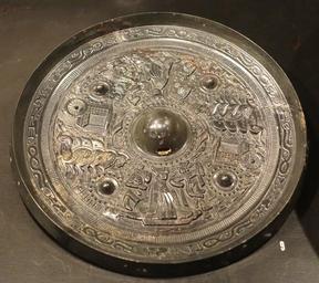 | Keywords: Mirror with Dongwanggong (King Father of the East) and Xi Wangmu (Queen Mother of the West), China, Han dynasty, 25-220 AD, bronze - Östasiatiska museet, Stockholm - DSC09581.JPG en Exhibit in the Östasiatiska museet Stockholm Sweden This artwork is old enough so that it is in the public domain Photography was permitted in the museum without restriction 2014-09-13 07 06 02 own Daderot other versions cc-zero Uploaded with UploadWizard Metalwork of China in Östasiatiska museet Dong Wang Gong Queen Mother of the West |