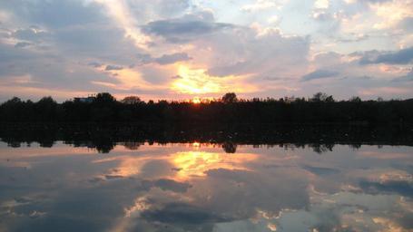 Keywords: mirroring forest sunset lake orange sky mood evening sun idyll still water rest nature trees silent