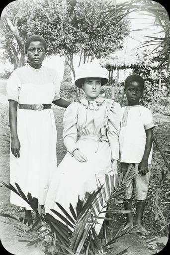 | Keywords: Miss M Cork and companions, Congo, ca. 1900-1915 (IMP-CSCNWW33-OS9-2).jpg en <br> Miss M Cork and companions Congo ca 1900-1915 Black and white lantern slide featuring Miss M Cork a young Congolese boy and an older woman who may be his mother Miss Cork sits at the centre of the image on a chair She wears a smart hat and an Edwardian style floor length dress with puff sleeves and narrow cuffs The boy and woman stand to either side of her The boy wears a smart shirt and short whilst the Congolese woman wears a light European style dress with a clasp belt Miss Cork was based at Bonginda recorded in 1899 and later at Lulonga and survived the wreck of the steamer Jebba when she returned to the United Kingdom on furlough in 1907 This slide comes from a collection generated by missionaries working for the Congo Balolo Mission a mission under the supervision of the East London Training Institute for Home and Foreign Missions that developed into the interdenominational evangelical mission Regions Beyond Missionary Union Photographer Unknown Filename IMP-CSCNWW33-OS9-2 tif Coverage date 1900/1915 Subject unesco Women; Missionary work Part of collection International Mission Photography Archive ca 1860-ca 1960 Part of subcollection Photographs from the Centre for the Study of World Christianity University of Edinburgh U K ca 1900-ca 1940s Subject corporate name Congo Balolo Mission Repository name Centre for the Study of World Christianity Archival file Volume2/IMP-CSCNWW33-OS9-2 tif Repository address The University of Edinburgh School of Divinity New College Mound Place Edinburgh EH1 2LX United Kingdom Geographic subject country Congo Format aacr2 lantern slides 8 2 x 8 2cm Geographic subject continent Africa Rights Contact the repository for details Part of series Regions Beyond Missionary Union Slides of Congo Missionaries CSCNWW33-OS9 Repository email divinity-CSWC ed ac uk Date created 1900/1915 Publisher of the digital version University of Southern California Libraries Subject aat genre group portriaits Format aat lantern slides; photographs Access conditions http //www ed ac uk/schools-departments/divinity/research/centres/world-christianity/collections-resources File CSCNWW33/OS9/2 Subject lcsh Women missionaries 1900/1915 date created author http //digitallibrary usc edu/cdm/ref/collection/p15799coll123/id/78011 PD-old-70-1923 Women of the Democratic Republic of the Congo Missionaries from the United Kingdom Congo-Balolo Congo-Balolo Mission Missionaries Magic lantern images Images from USC Digital Library uploaded by Fæ International Mission Photography Archive ca 1860-ca 1960 |
