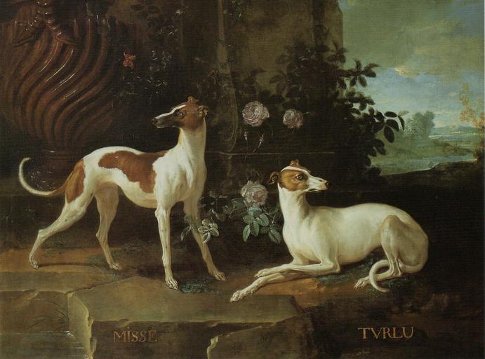Keywords: Misse and Turlu, Two Greyhounds Belonging to Louis XV.jpg Uploaded with en wp UW marker 2013 01 24 Jean-Batiste Oudry Original publication Unknown<br/> Immediate source http //www texasitaliangreyhounds com/tag/france/ 1725 Jean-Baptiste Oudry<br/> Life time 1686-1755 Musée national du Château de Fontainebleau Accurate photographs of two-dimensional visual artworks lack expressive content and are automatically in the public domain once the painting's copyright has expired which it has in the US if it was published before 1923 All other copyright notices can safely be ignored Whippet 18th-century greyhounds in art Paintings of animals by Jean-Baptiste Oudry Musée national du Château de Fontainebleau PD-old-100-1923 |