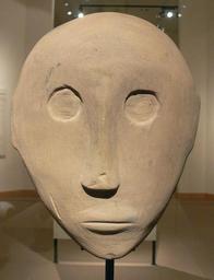 | Keywords: Mississippi stone burial mask EthnM.jpg Steinerne Begräbnismaske Mississippi-KLultur um 1200 “1700 Aus einem Grabhügel in Tipton County Tennessee Nordamerikaabteilung Ethnologisches Museum Berlin Sammlung Stolper 1970 Stone burial mask Mississipian culture c 1200-1700 AD From a burial mound in Tipton County Tennessee North America department Ethnological Museum Berlin Germany Stolper collection 1970 own 2009-02 User FA2010 Native American masks in the Ethnological Museum Berlin Mississippian culture mortuary practices Mississippian stone statuary Native American masks |