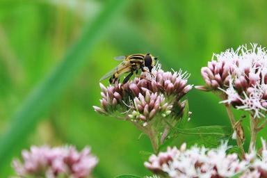 Keywords: mist bee mud bee translucent bees keilfleckschwebfliege hoverfly wasps fly flower plant blossom bloom nature bloom green flora meadow summer pointed flower grass