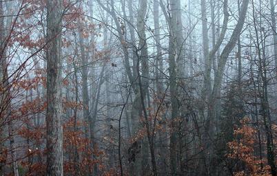 Keywords: mist fog forest in winter dormant trees landscape wilderness scenery natural wild outdoor environment view scenic land nature