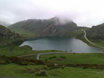 Keywords: mist mountain winter lake asturias mountains clouds rain grey green