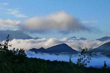 Keywords: mist sea of clouds landscape nature mountain morning alps contrast