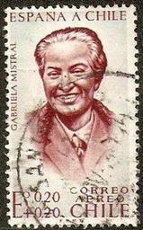 | Keywords: Mistral G 1945.JPG en Victims of the earthquake Spain to Chile semipostal heliography series of four stamps issue 2 mill es Victimas del terremoto España a Chile Semipostal heliograbado serie de cuatro sellos postales; emisión 2 millones own uploader Penarc 1962-12-15 PD-Chile GFDL cc-by-sa-3 0 People of Chile on stamps Stamps of Chile Gabriela Mistral Nobel laureates on stamps Mistral Gabriela | ||||