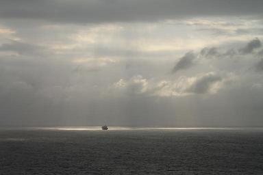 Keywords: misty deep sea ocean sunrise ship sunrays