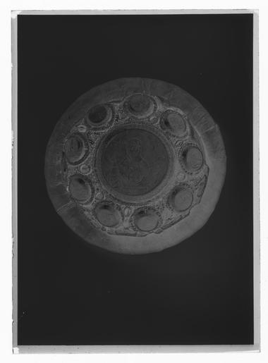 | Keywords: Mitra, ovanifrån - Livrustkammaren - 18355-negative.tif Mitra av hattformig modell med cylindrisk kulle med svagt rundad kant Vulstformigt brätte b ca 30 mm klätt med pergament ursprungligen med skinn Kullen klädd med delvis mycket slitet karminrött siden nertill vid brättet ring av förgylld silverplåt b 30 mm med graverad gammalslavisk text översättning se Bodin <br/>År 7 159 november 17 dagen gav statssekreteraren Michail Danilovs hustru änkan Uljana dotter till Vasilij denna biskopsmössa till Tjudovklostret till den undergörande Aleksijs hem till minne av sin make Michail Danilovitj eremitmunken Misail och sin dotter Ksenia för sin själ<br/><br/>Därovanför en krans med sex ursprungligen nio helgonbilder graverade på rektangulära plåtar med trepassformig överdel mellersta bågen spetsig h 83 mm b 58 mm gammalslaviska texter <br/>1 - ett manligt helgon med otydlig text pete ; 2 - ärkeängeln Gabriel achange gabri ; 3 - Maria mrthy mätär Theo - Guds moder ; 4 - ärkeängeln Mikael achage michail ; 5 - evengelisten Petrus apoto petr ; 6 - helgon i biskopsdräkt st alekse miro <br/><br/>På kullens översida en krans med nio runda plåtar med serafer och keruber fyra stycken med text serafim fem med cherubi <br/><br/>Mitt på kullen en stor rund plåt d 102 5 mm med Maria och Jesusbarnet text mrthy Guds Moder <br/><br/>Runt plåtarna broderier med silke silvertråd och -paljetter två ovala genomborrade glaspärlor bevarade <br/><br/>Hatten invändigt stoppad och klädd med blekrött siden original caption mitra - LRK 5388 ovanifrån Slaget vid Narva 1650 silver thread - silver - silk Färg röd karminröd material siden - parchment size mm 265 bräm g 6145 size mm 150 ca size mm 195 kulle LRK Karl XII av Sverige Mille ans de tradition chret 1988-1989 Kungens lockpipa 1995-1996 Karl XII och Peter den store 1998-1999 Krigsbyte 2007-2008 300-årsminnet av slaget vid Poltava / Poltava 300 Years Eremitaget och Kreml-museet 2009-2010 achange gabri Gabriel achage michail Mikael mrthy Mätär Theou - Guds Moder Maria apoto Petr S t Petrus Per st alekse miro S t Alexej Miro achange gabri Gabriel achage michail Mikael mrthy Mätär Theou - Guds Moder Maria apoto Petr S t Petrus Per st alekse miro S t Alexej Miro place of origin original filename LN_B09462_012342 42045 inventory number LRK 5388 18355 CC0 Mitra ovanifrån - Livrustkammaren - 18355 tif <gallery caption Different images of same object > File Helbild mitra - Livrustkammaren - 9793 tif </gallery> |