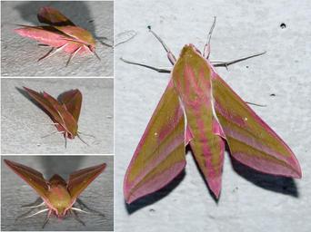 Keywords: Mittlerer weinschwärmer.jpg en Sleeping Elephant Hawk-moth Deilephila elpenor on wall from different angles own Cahos 2010-06-13 Deilephila elpenor