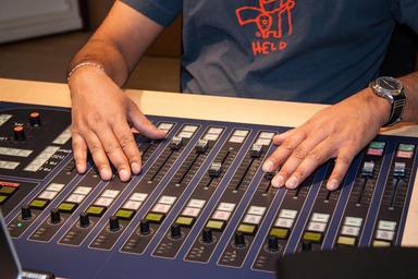 Keywords: mixer sound studio speaker cab director desk transfer of information images sound text electromagnetic waves radio network
