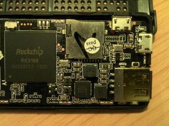 | Keywords: MK809III V1.0 130606 inside VREG uSD USB.jpg en Originally produced as an Android Mini-PC TV-Stick there is a range of Operating Systems to run on RK3188 ARM SoC devices such as this one Despite the Android logo on the outside it also runs other Linux distributions The specific model name found on the board inside is MK809III V1 0 This device was built in the 25th week of 2013 and the PCB revision dates 2013-06-06 Its characteristics are Rockchip RK3188 ARMv7 SoC GEIL 2GB DDR3 RAM memory SK hynix 8GB NAND memory Active ACT8846 Voltage Regulator Broadcom AP6210 WIFI/BT Combo ITE IT66121 HDMI chip Blue LED power on customizable 1 recovery button paper clip hole on the side 1 µSDHC card reader 1 USB2 0 OTG micro size connector for peripheral or nand flash see below 1 USB2 0 micro size connector for 5V 2A power connect in normal usage 1 USB2 0 HOST full size connector for peripheral to flash the device unplug every port of the device use a paper clip to push the recovery button and hold connect OTG port ONLY to a PC wait a couple of seconds release recovery button flash using your favorite software The device is very similar to Rikomagic MK802 IV or Radxa Rock devices up to the extent that firmwares are interchangable They are all built around the same RK3188 ARMv7 SoC The Kernel can be customized by the end user as leaked Rockchip Kernel sources versioned 3 0 36 may be found on Github Some work is in progress to integrate support into mainline kernel tree For more info see http //linux-rockchip info/mw/index php title RK3188 2014-04-15 04 52 21 own Cmuelle8 cc-zero Uploaded with UploadWizard MK809III |