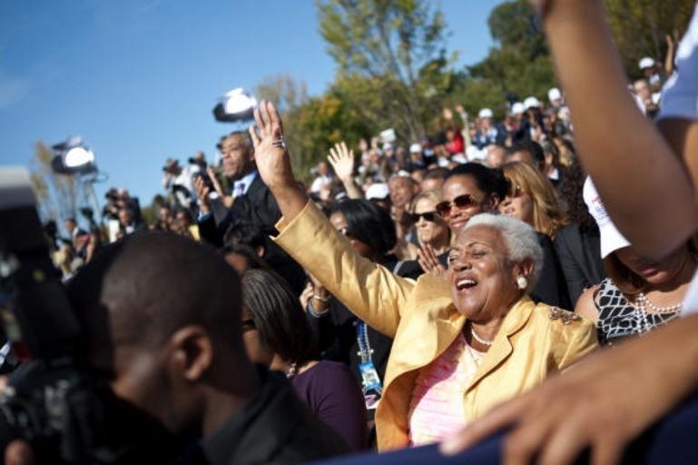 | Keywords: MLK Memorial dedication.jpg AD King stands as President Barack Obama delivers remarks during the dedication ceremony of the Martin Luther King Jr National Memorial in Washington D C Sunday Oct 16 2011 Official White House Photo by David Lienemann 2011-10-22 http //www whitehouse gov/blog/2011/10/16/president-obama-martin-luther-king-jr-memorial-dedication-we-will-overcome Official White House photo www whitehouse gov PD-USGov Uploaded with UploadWizard Martin Luther King Jr National Memorial |