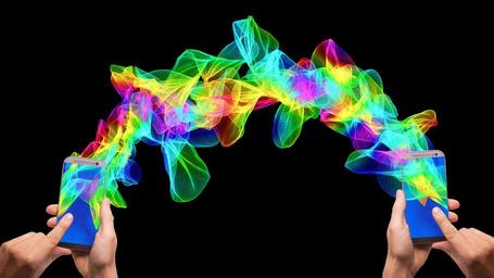 Keywords: mobile phone smartphone hand tablet particles wave color colorful lines pattern abstract design interference swing lights