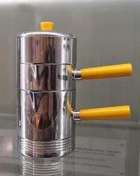 | Keywords: Mocha coffee set, Model 90073, designed by Russel Wright, Chase Brass & Copper Company, Waterbury CT, 1935-1938, chrome-plated brass, Catalin - Museum für Angewandte Kunst Köln - Cologne, Germany - DSC09549.jpg Industrial design right Hence this work is now in the public domain 2015-11-28 10 45 44 own Daderot other versions cc-zero Collections of the Museum für Angewandte Kunst Köln Russel Wright Chase Brass and Copper Company | ||||
