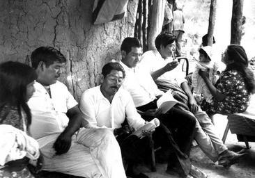 | Keywords: argentina chaco toba mocovi bible missions blackandwhite monochrome people black and white Caption: 1979. Mocovi Indian Christians reading Mocovi scriptures to each other at a church meeting. Citation: Mennonite Board of Missions. Photographs. Argentina, 1960's and 70's. IV-10-7.2 Box 1 folder 44, photo #113. Mennonite Church USA Archives - Goshen. Goshen, Indiana. Caption: 1979. Mocovi Indian Christians reading Mocovi scriptures to each other at a church meeting. Citation: Mennonite Board of Missions. Photographs. Argentina, 1960's and 70's. IV-10-7.2 Box 1 folder 44, photo #113. Mennonite Church USA Archives - Goshen. Goshen, Indiana. |