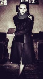 Keywords: model girl dress view beauty dark background fashion style jacket female emotions long hair photoshoot table hairstyle hair posture sitting cosmetics hands person
