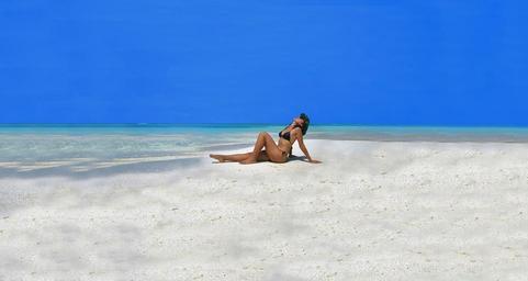 Keywords: model maldives beach sexy girl glamour bikini swimsuit fashion sand sea blue sky scenic holiday sunbathing blue sky landscape vacation summer water tropical ocean horizon seascape outdoor sunny sky paradise scenery tranquil