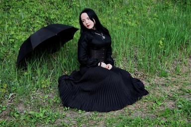 Keywords: model stock girl woman female rain umbrella goth gothic sadness sad depression dark black lady melancholy