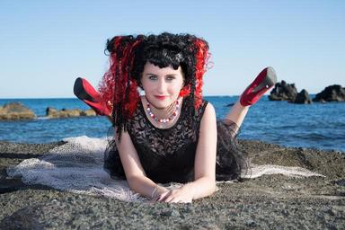 Keywords: model woman beach girl sexy mode look portrait top model red hair hairstyle doll