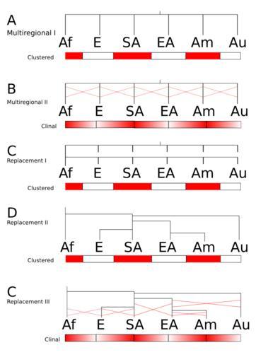 Keywords: Models for human evolution.svg en Some cladogram models for human evolution Own Wobble 2008-11-28 Human evolution