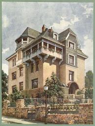 | Keywords: Moderne Villen in Meisteraquarellen Serie II Tafel 038 Wiesbaden Villa Dambachtal 18.JPG Wiesbaden Architekt Friedrich W Werz und Paul Huber Tafel 38 aus Oscar Grüner Moderne Villen in Meisteraquarellen Serie II 64 Tafeln Verlag Friedrich Wolfrum Co Wien und Leipzig ca 1905 Hochschulbibliothek Georg-Simon-Ohm-Hochschule Nürnberg http //bvbm1 bib-bvb de Oscar Grüner / Verlag Friedrich Wolfrum Co ca 1905 Villas in Wiesbaden History of Wiesbaden Watercolor paintings of houses Watercolor paintings in Germany 1900s watercolor paintings Moderne Villen in Meisteraquarellen Serie II PD-old |